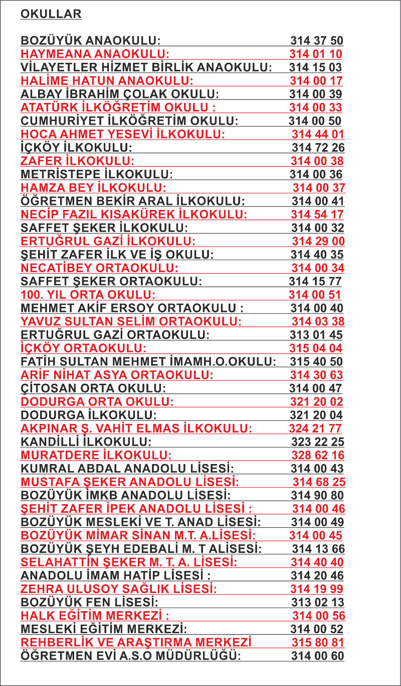 » Önemli Telefon Rehberi » Okullar